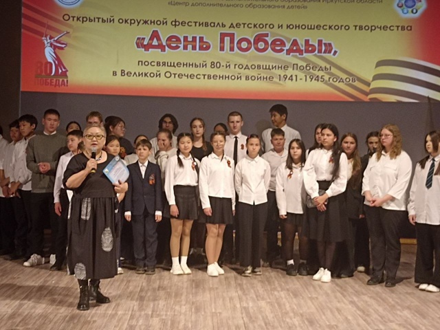 28 апреля в п. Усть- Ордынский состоялся окружной фестиваль детского и юношеского творчества " День Победы", посвященный 80- й годовщине со дня Победы в Великой Отечественной войне 1941-1945 гг. В рамках данного фестиваля прошла защита образовательного проекта "Путь Героя". Обучающиеся 6 А класса Тугулханова Кира и Бухаева Янжина достойно защитили проект "В бой идет сибиряк Афанасий Белобородов". Команда 6 А класса стала Победителем проекта "Путь Героя" и награждена Дипломом за 1 место. Благодарности от ГБУ ДО Иркутской области "Центр дополнительного образования детей" получили руководители проекта Ибрагимова О.В. и Скворцов Е.Г.